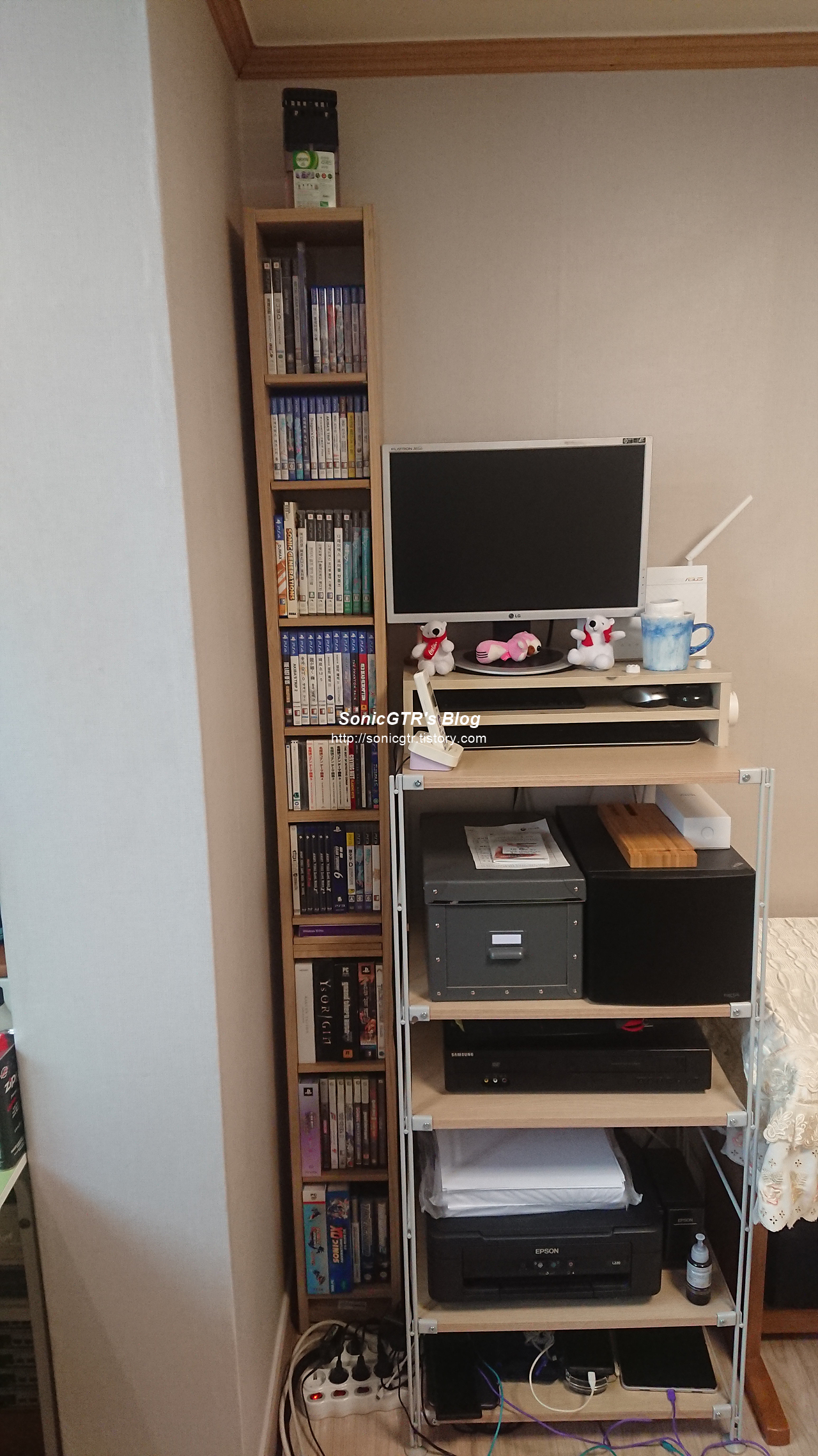 하단엔 특수 게임 컨트롤러 (플레이스테이션 샤프슈터, 엑스박스 기타 컨트롤러) 를 보관할수 있게 했습니다.