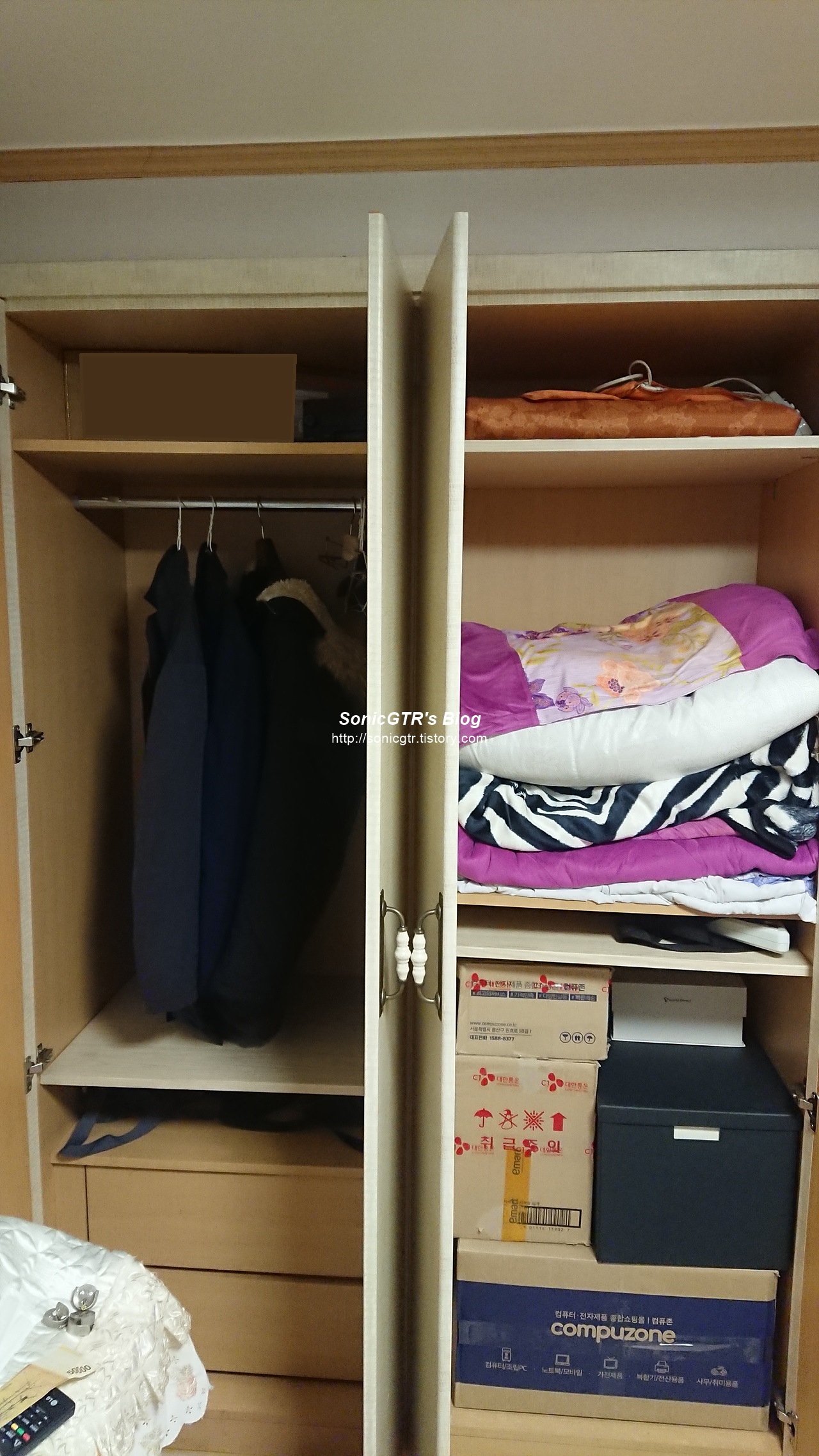 우측은 상단엔 전기장판이나 기타 침구류
