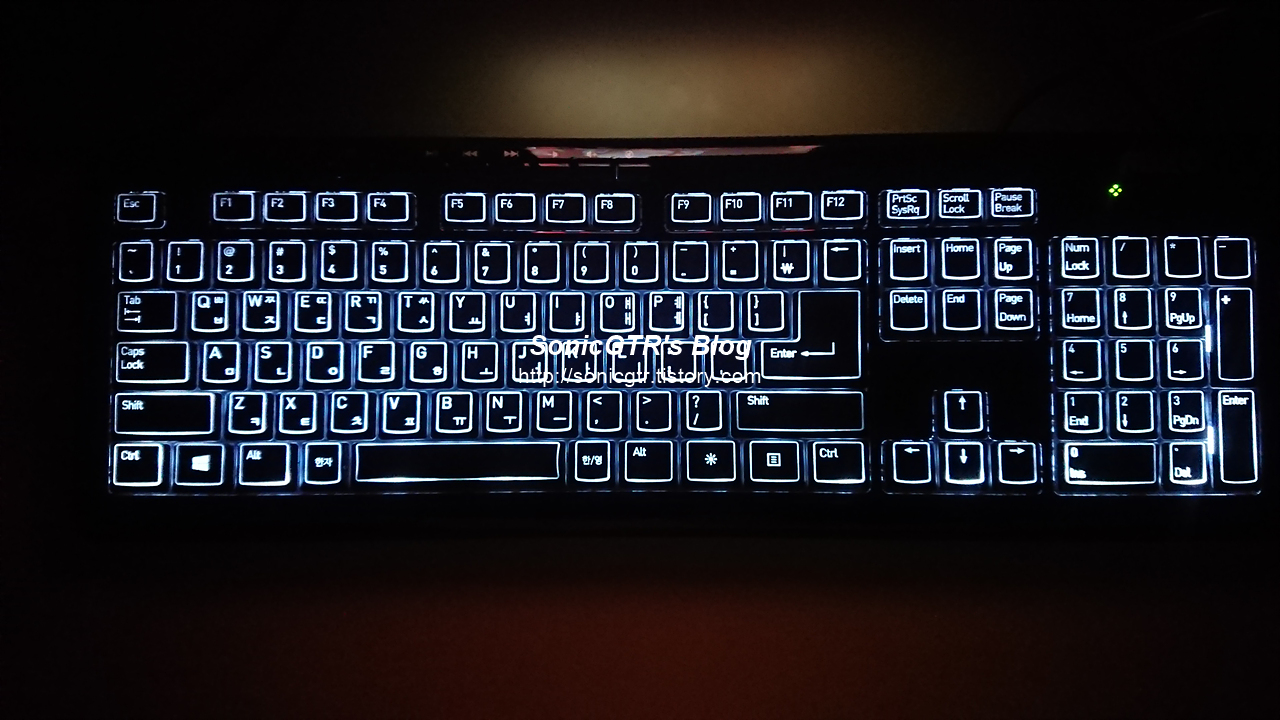 사진의 HTPC 액정에서 비춰져 나오는 불빛이 거의 눈뽕 수준으로 찍힌걸 보면, 이 키보드의 백라이트 밟기는 그냥 키의 위치를 보여주는 정도라고 보시면 됩니다.