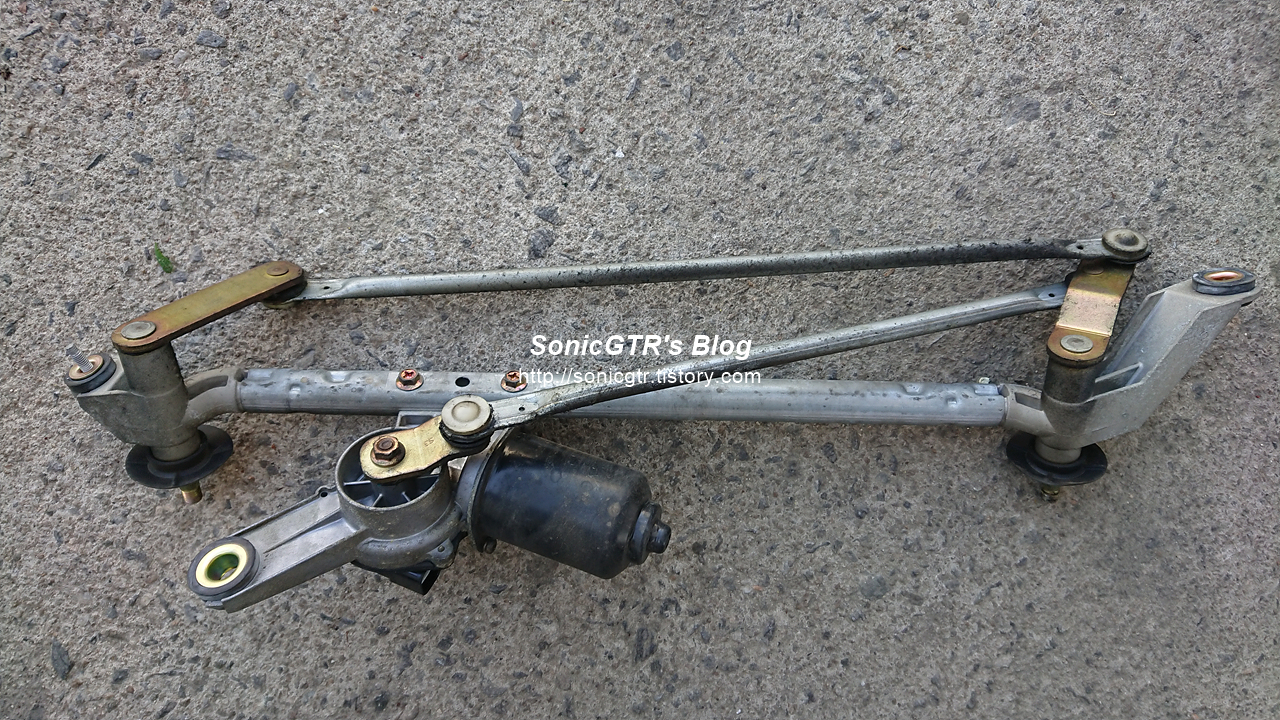 탈거된 와이퍼 작동부 (링케이지 + 모터).
