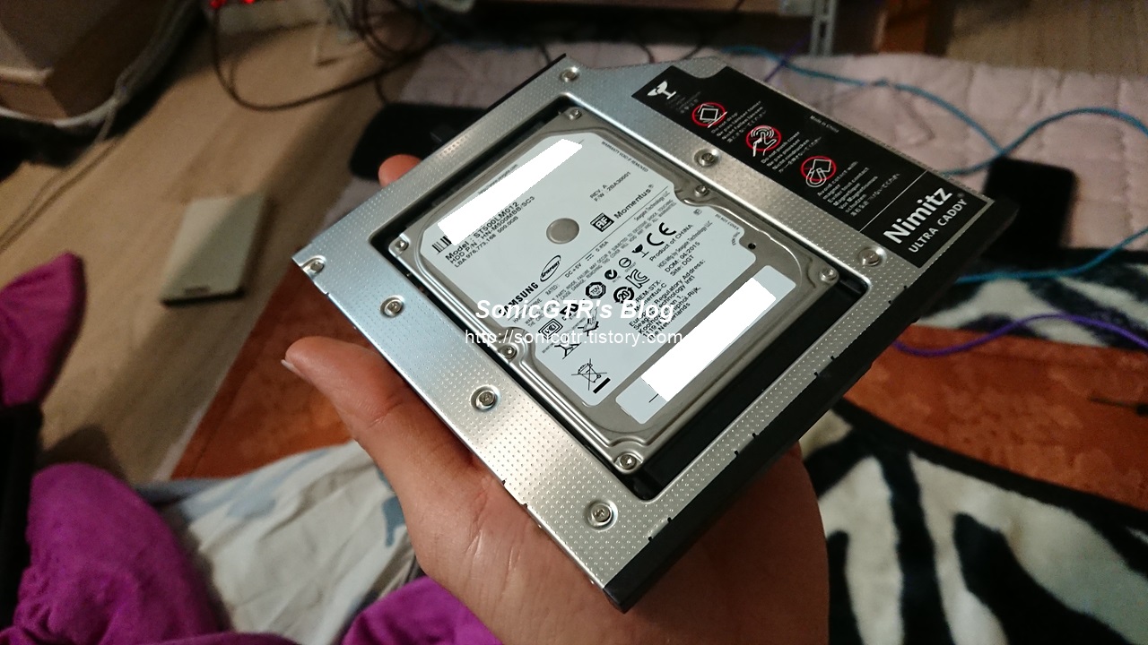 9.5mm 인 울트라베이 슬림에 9.5mm 하드디스크를 넣을수 있게 끔 만들어져 있습니다.