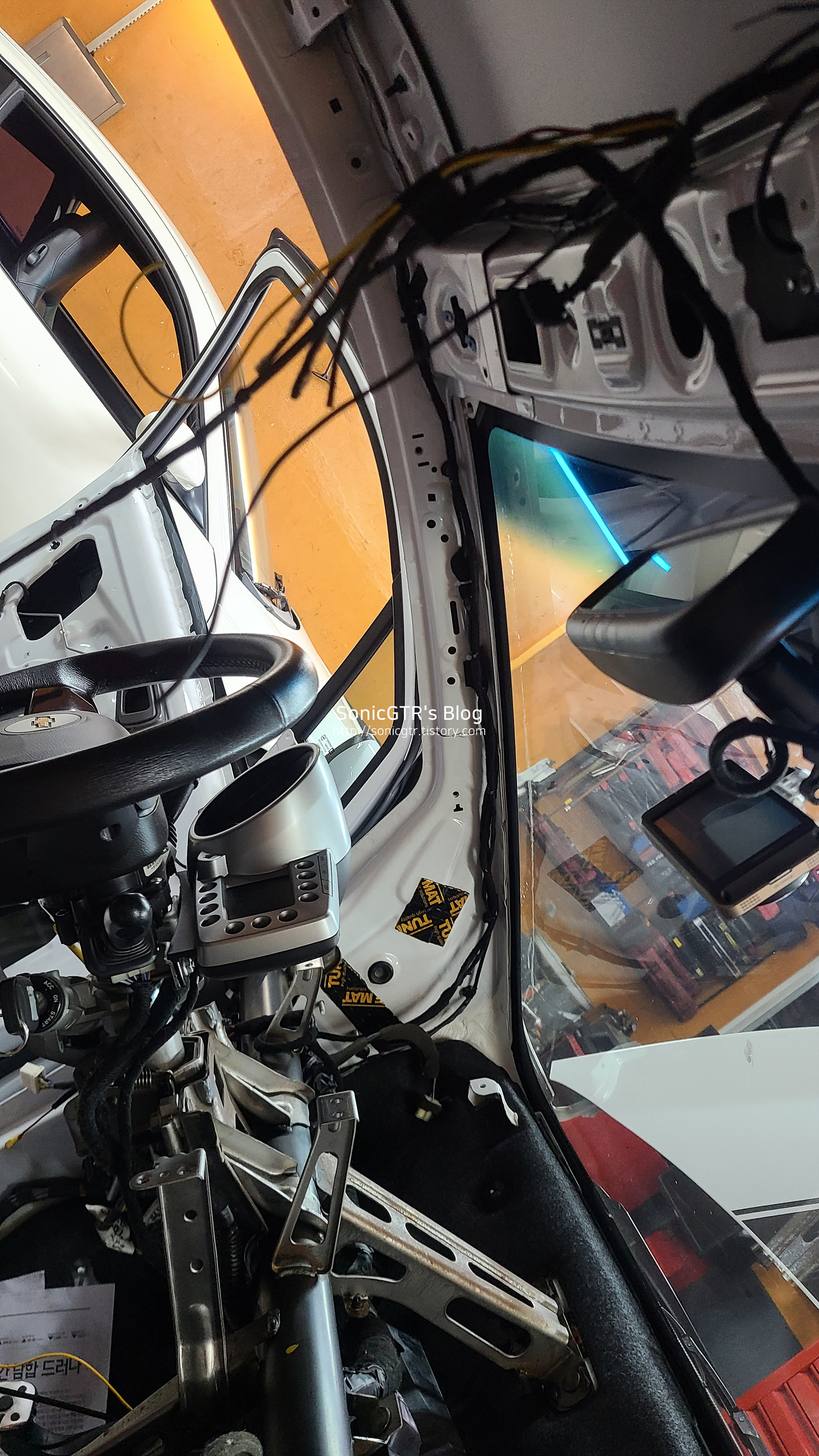 대시보드 장치의 모든 배선과 실내 퓨즈박스및 관련 배선이 전부 타이바에 묶여 있기에 탈거시 전선 파손에 주의해야 합니다.