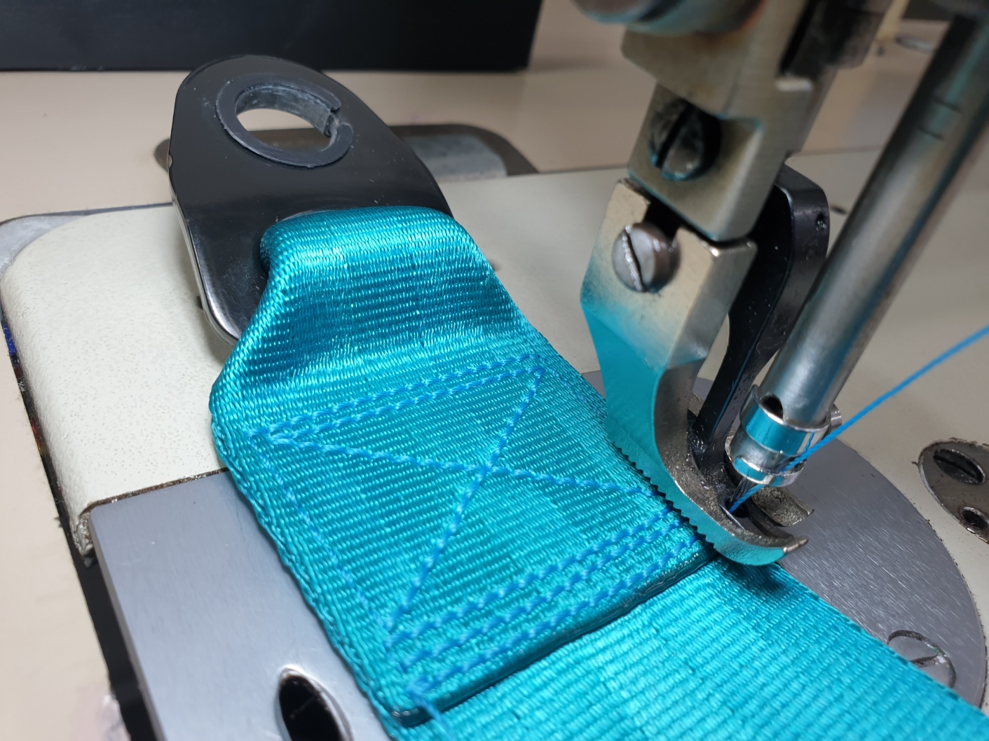업체측에서 보내준 작업사진중 하나입니다. 공업용 미싱과 안전벨트에 맞는 고강도 나일론 실로 박음질을 해서 작업을 하게 됩니다.