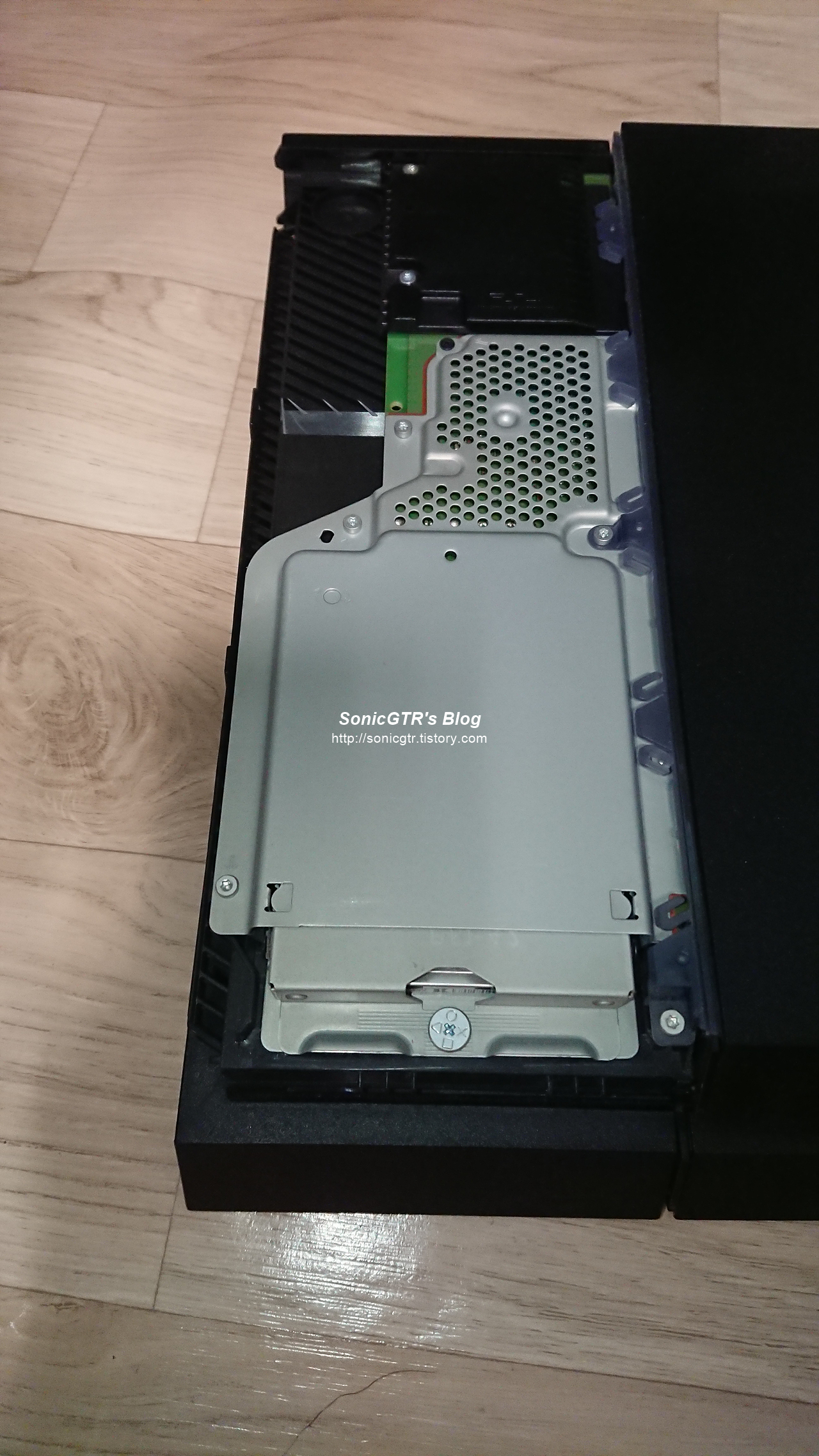 하드디스크 캐디에 달려있던 기존 하드디스크를 빼고, 새 하드디스크를 장착한다음 PS4를 원상태로 조립하면 끝.